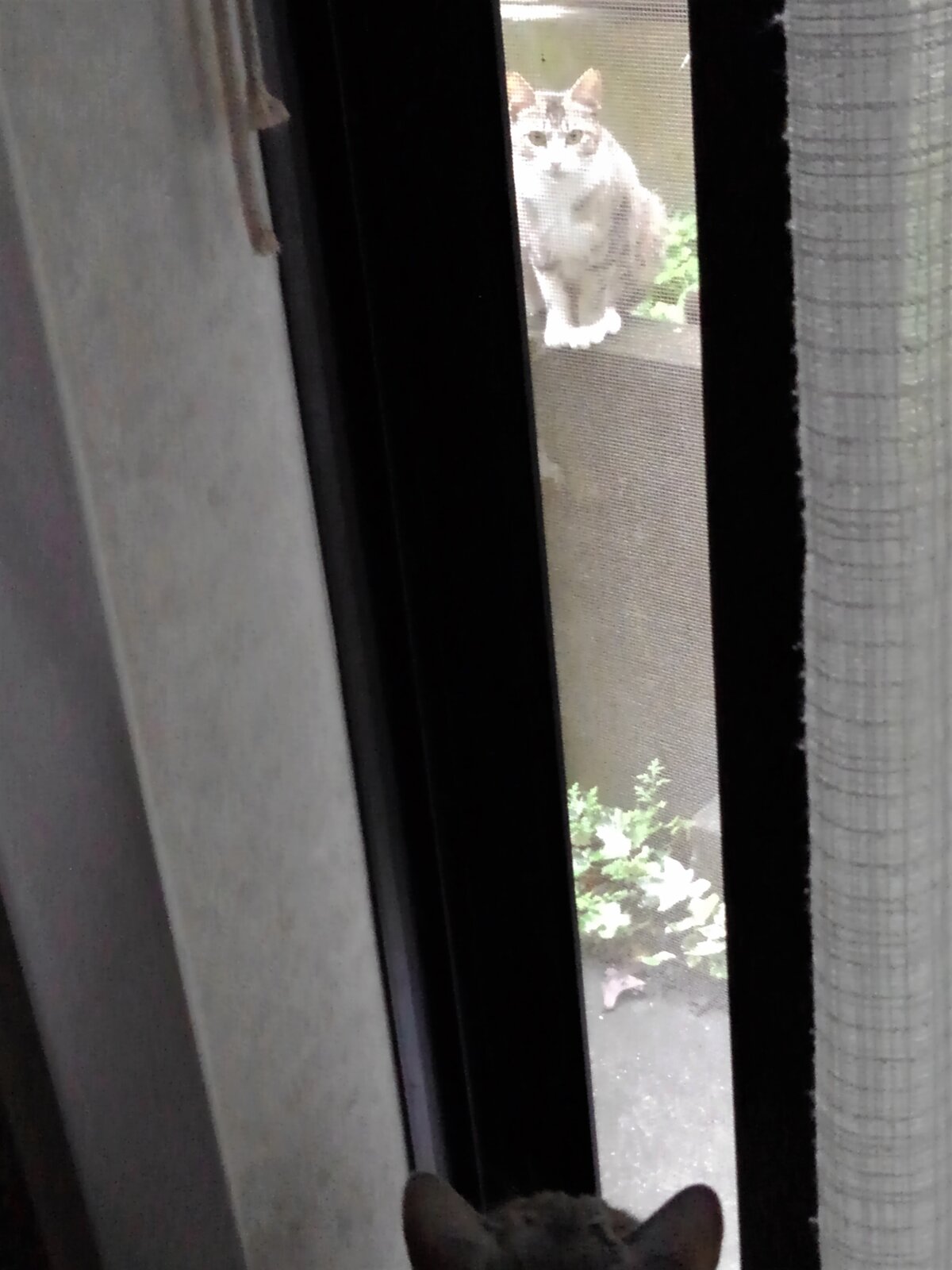 この二人時々、家の中と外から見つめ合っています(笑