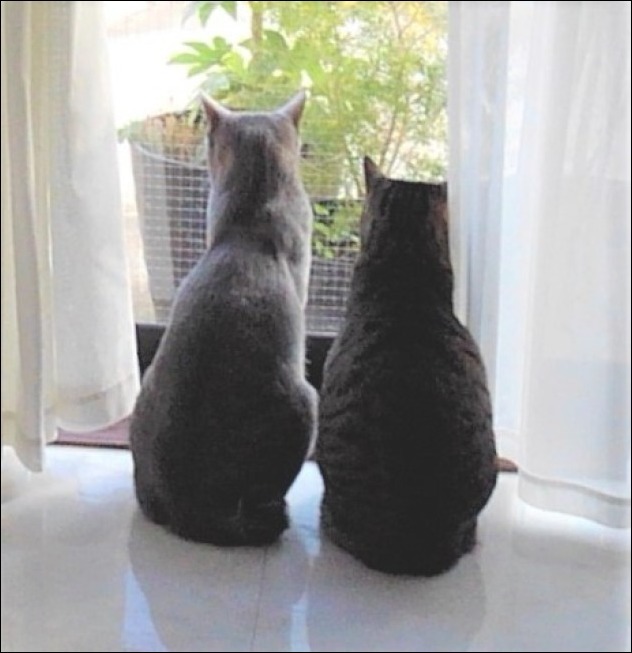 予報では晴天だったので、猫グッズを洗濯したのに・・・。