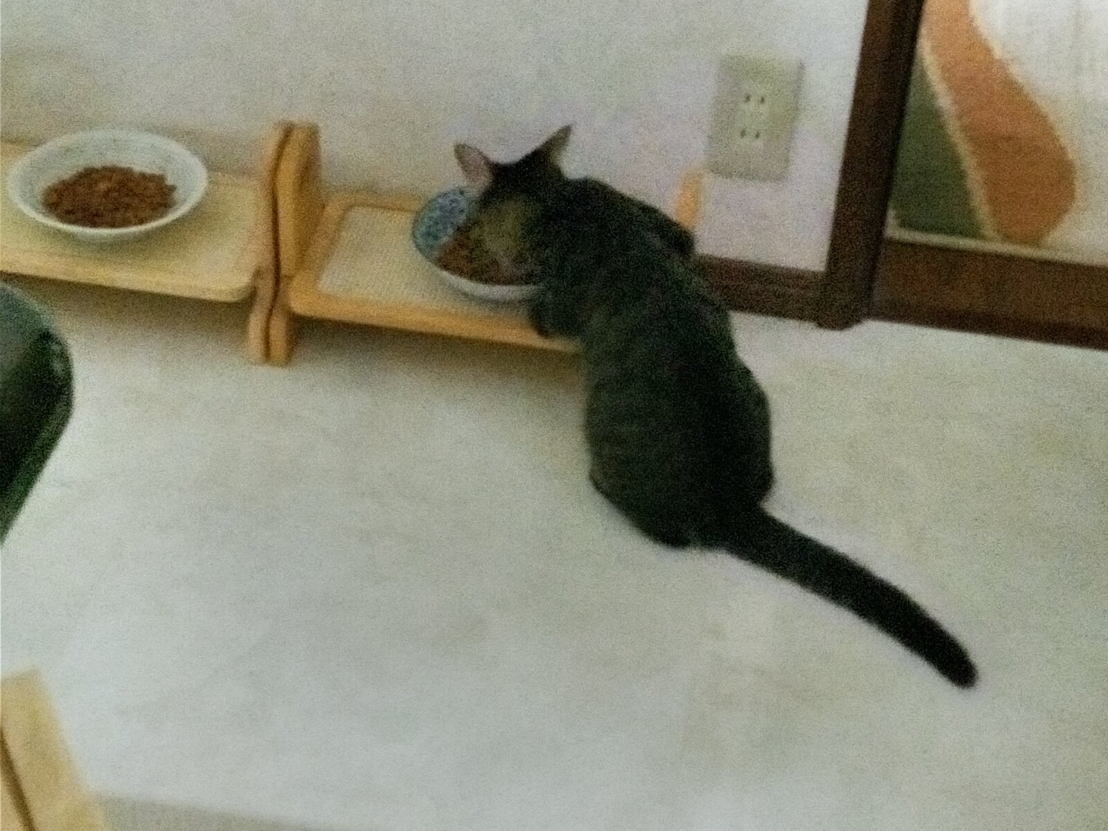 2022年09月14日 鼻チューのグリとビビだが・・・&トトは強気! 昨日からビビたちの隔離部屋を日中だけフリーにした。いつもと変わらず、お昼寝の時間帯は静かだった。途中、トトが出てきて先住猫のフードを食べた・・・よく見ればお皿は空っぽ!大人用のフードは美味しかった?(笑満足したのか、遊び相手がいなくてつまらないのか、再びお昼寝に戻ったようだった。それから、今度はビビがやってきた。私と一緒にいたグリが見つけて近寄る!シャーか!何事もなく、ビビとグリが鼻チューをしている(笑トトがいると駄目なのかな・・・(^^;ビビは母猫になり、グリは子猫に己の地位を奪われたと勘違いか!↓ 珍しくキャットタワーのネコハウスに入っていた。今日の朝の様子・・・トトちゃん、仔猫用フードに見向きもせず、大人のご飯を食べる。そこにやって来たブブに猫パンチ!トトちゃん、強気だね~(^^; ――――――――――外猫の記録――――――――――珍しく2日続けて茶子が来た。
