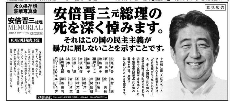2022年09月29日 国葬の献花に2万人を超える人の列 献花をする人は若者が多い・・・。かたや国葬反対のデモは高齢者が多い・・・。ということだが、献花をする人は若い人が目に付いたが、反対デモにも若者はいた。平日の日中だし若い人は働いている時間帯だ。いくら安倍さんが好きでも泣くほど支持していたのかな、と不謹慎な思いで見ていたら小林よしのりの記事を見て、同じことを思うんだなと安心した。岸信介から三代にわたり、統一教会と深い関係にあった安倍晋三氏。選挙の票の采配まで安倍氏がしていたようだし選挙に統一教会は献身的に協力したことを考えれば、献花に訪れるくらいの動員はかけるだろうな・・・、これが私の抱いた印象だった。安倍氏の価値を高めれば、それだけ統一教会のメリットはある。安倍氏を批判的に見る人は国葬反対を言い、支持する人は下のような意見広告を出す。価値観は人それぞれ・・・。だが、民主主義を踏みにじってきたのが安倍晋三氏・・・安倍氏の手法を踏襲したかのように、国会に諮らず内閣で国葬を決めた岸田氏。安倍氏国葬は民主主義崩壊の象徴的な出来事として記憶されるだろうか。 参考資料として・・・ 続きを読む