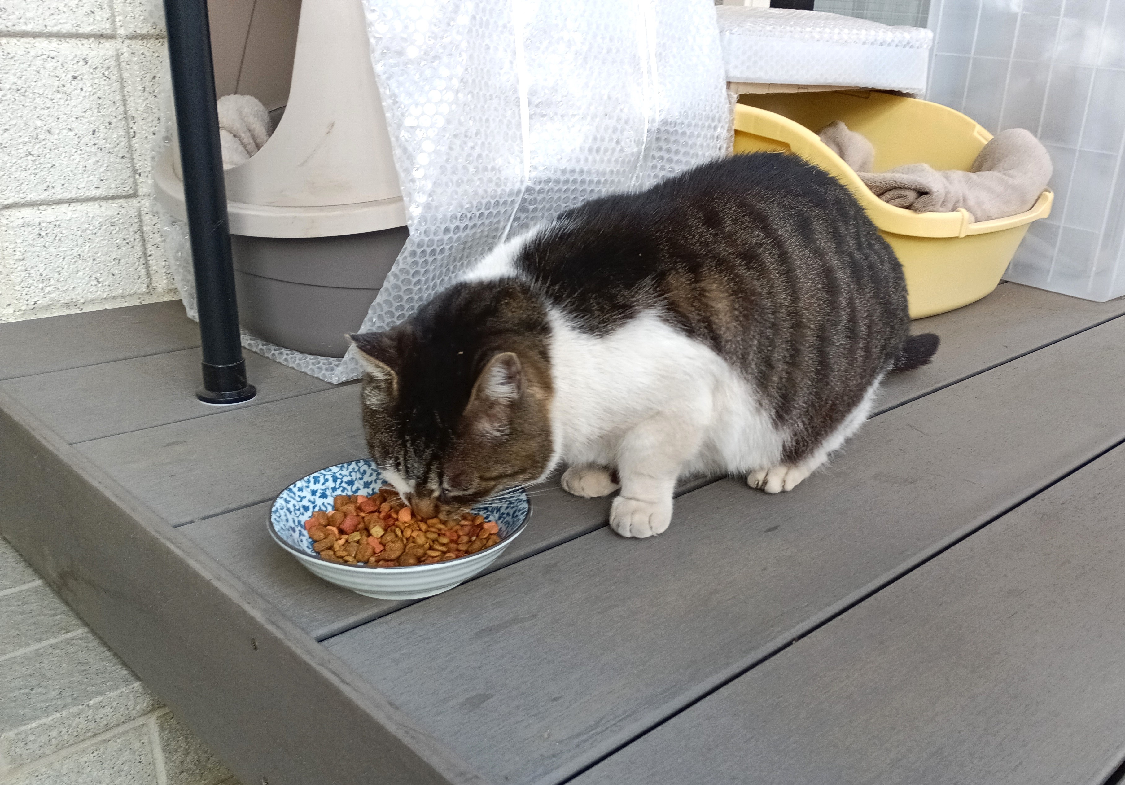 そしてカリカリとおやつのちゅ~るをあげてお皿を撤収です。