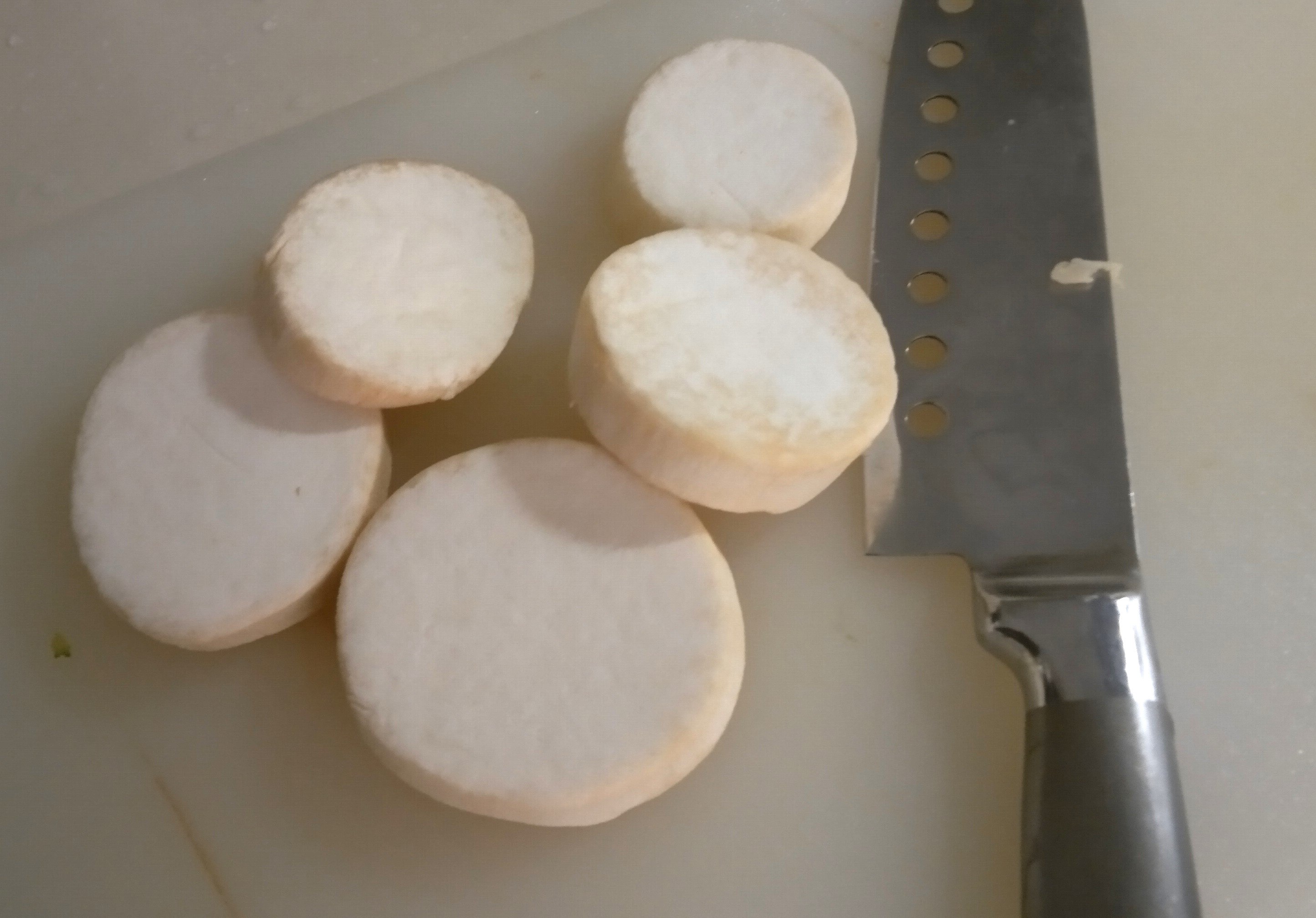 エリンギは茎の部分を輪切りにしたものがお安く出ていたので購入。